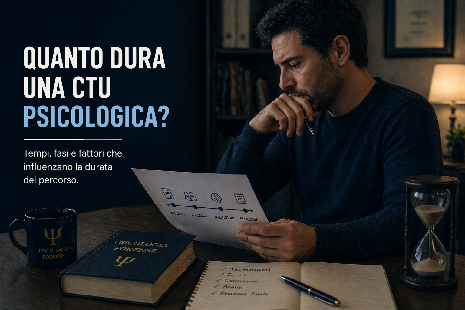 La CTU si sviluppa in diverse fasi: analisi della documentazione, colloqui, eventuali test, osservazioni e redazione della relazione finale. Ogni fase richiede tempo e attenzione.